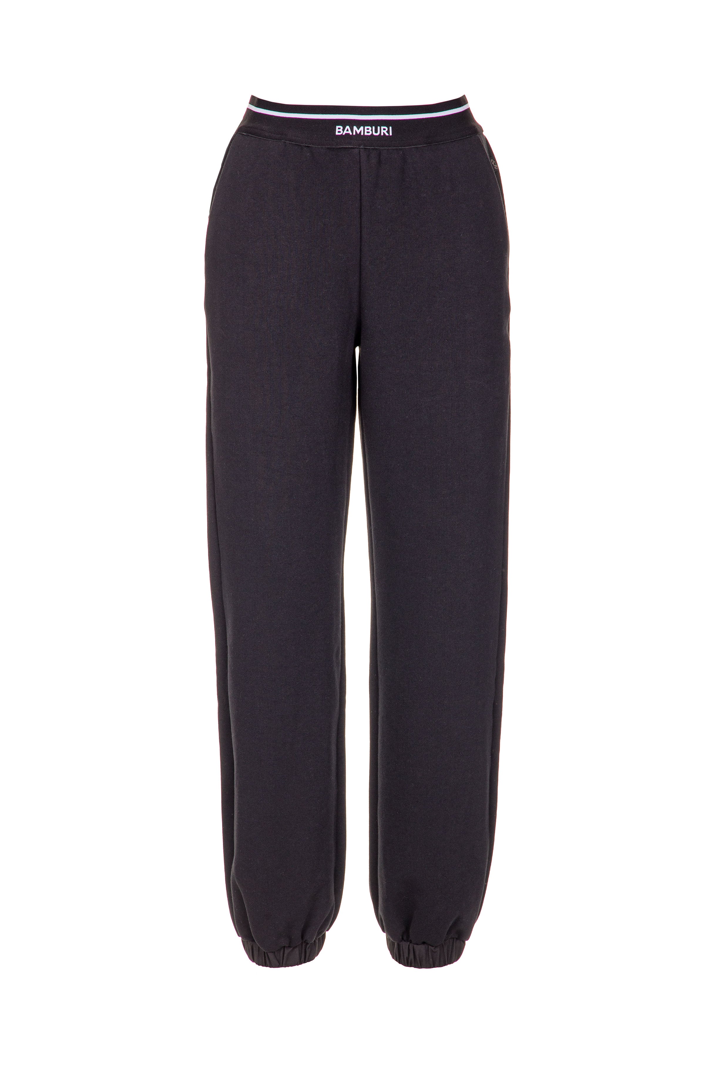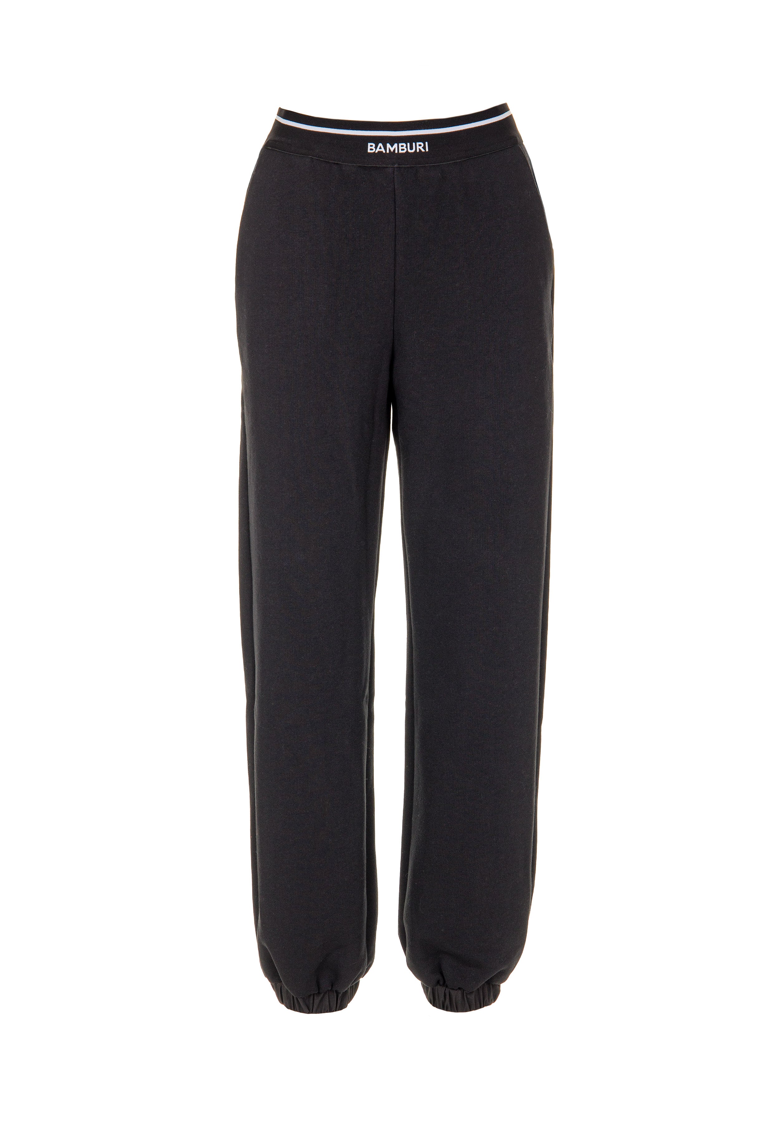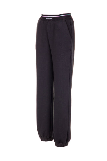 Minimalist and versatile, these Bamburi joggers in deep black feature a comfortable elastic waistband with logo detail, side pockets, and elasticated cuffs. Crafted in soft cotton-blend jersey, ideal for effortless everyday wear or relaxed street looks.