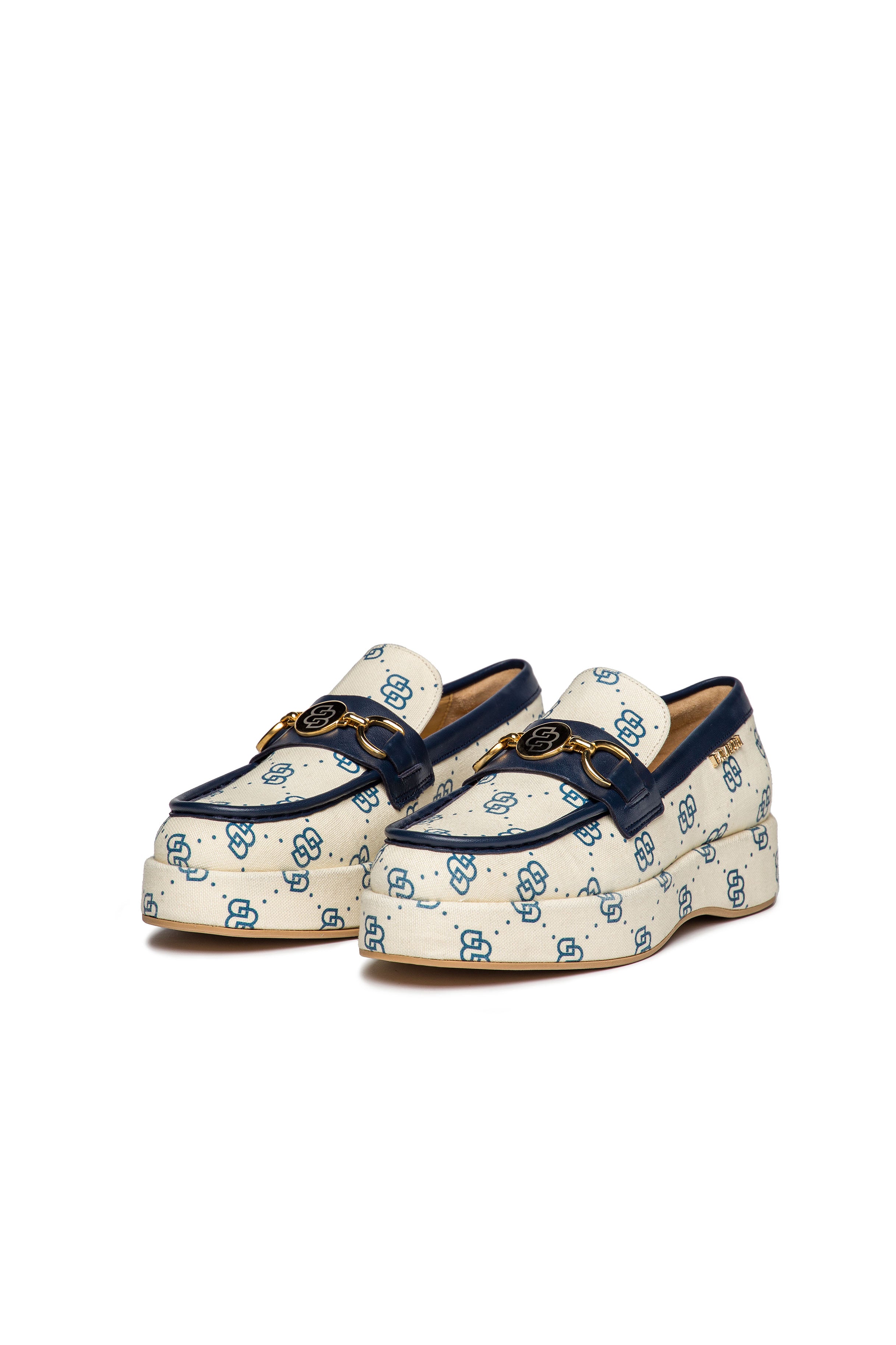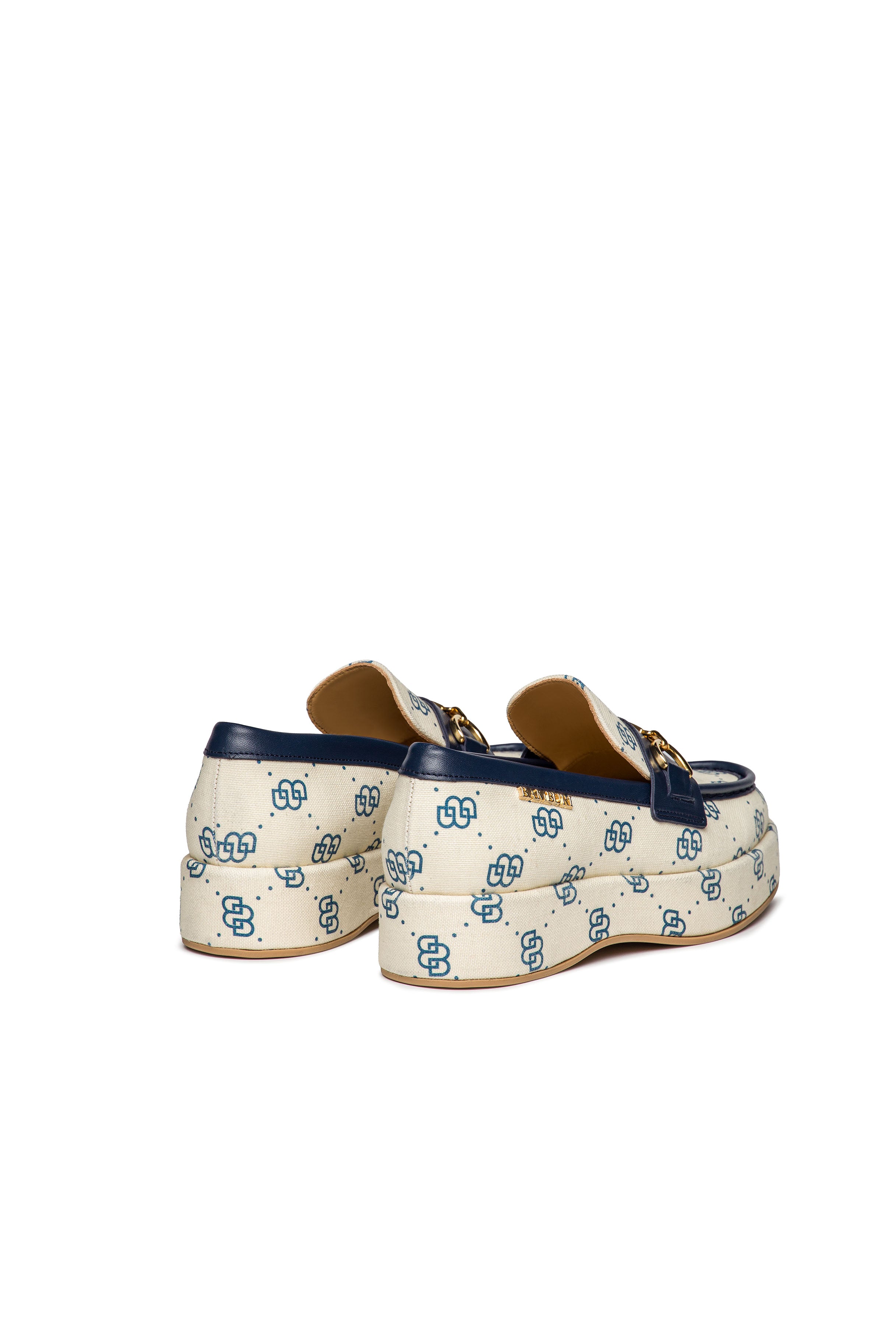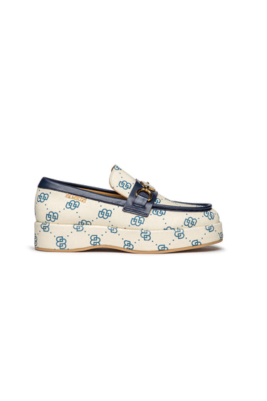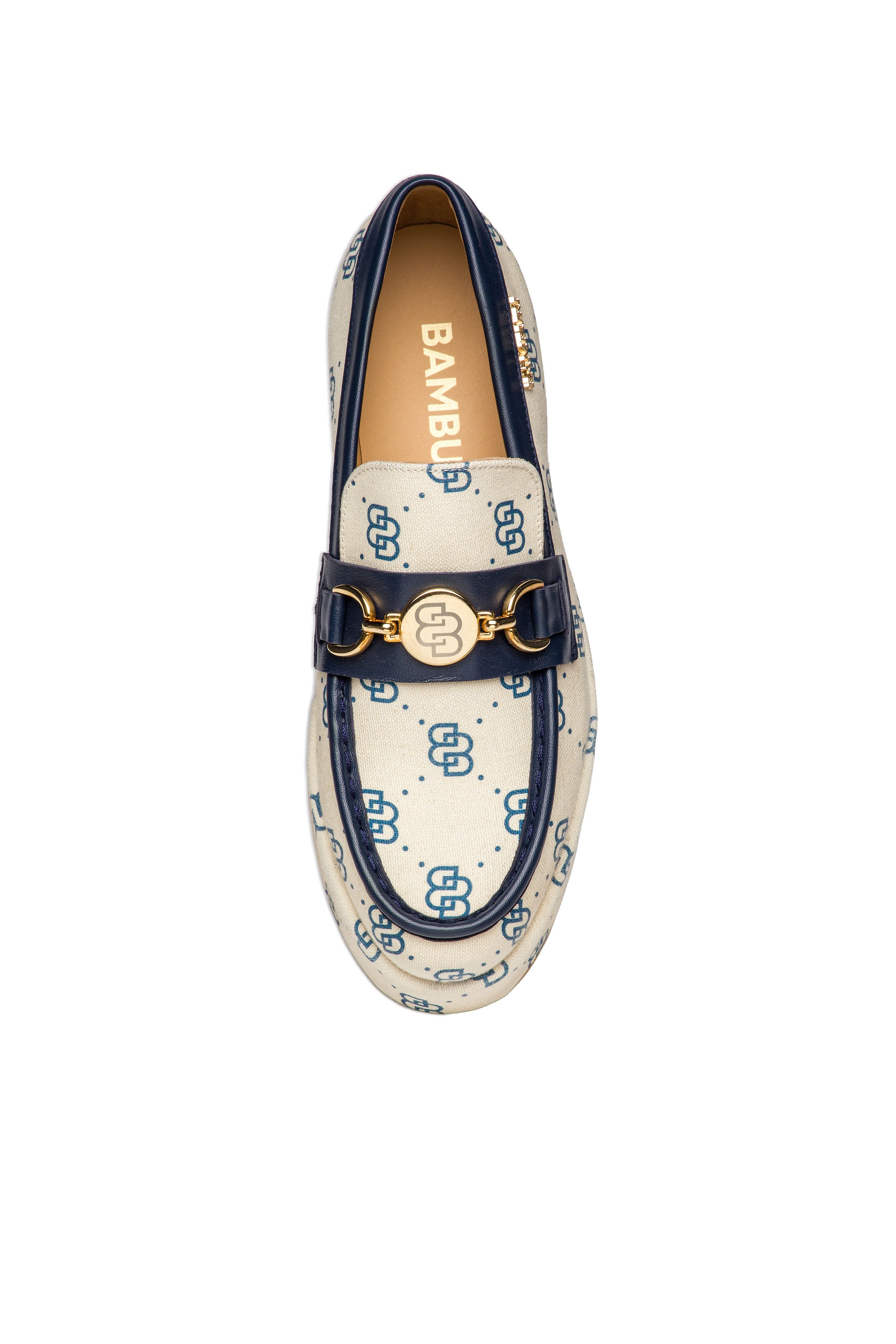 These beige and navy chunky sneakers merge athletic influence with refined golden accents. Designed for dynamic comfort and effortless elegance.