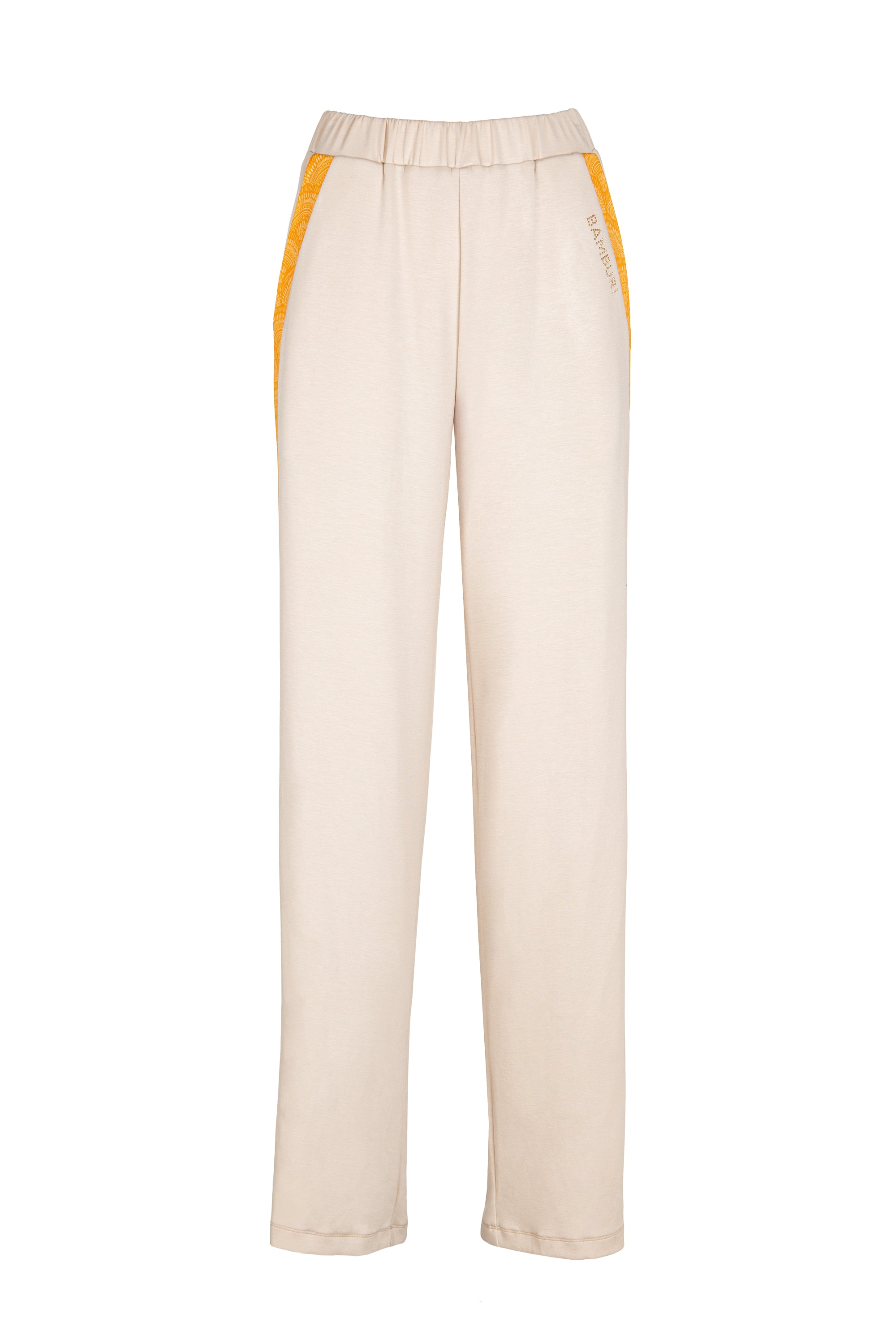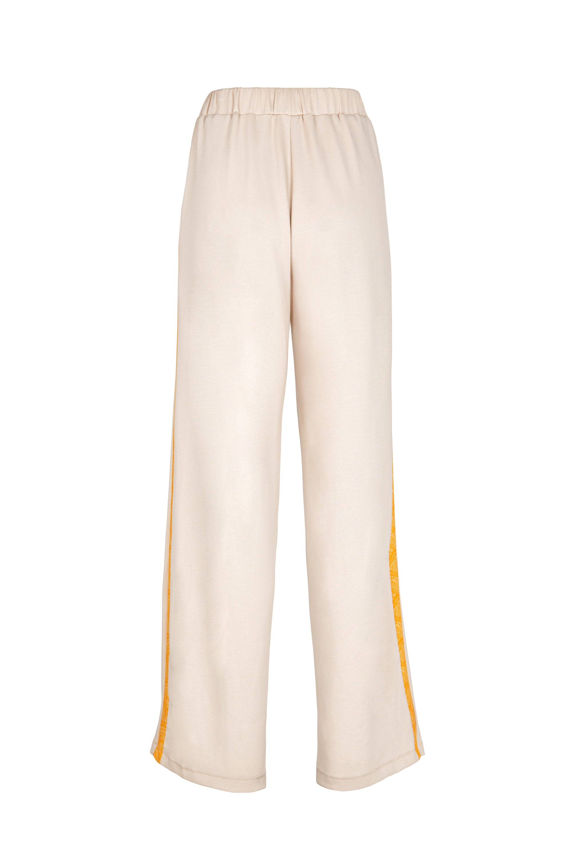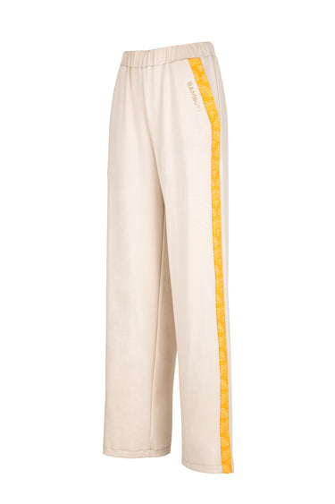Nude Wide-Leg Pants with Yellow Mandala Side Panels