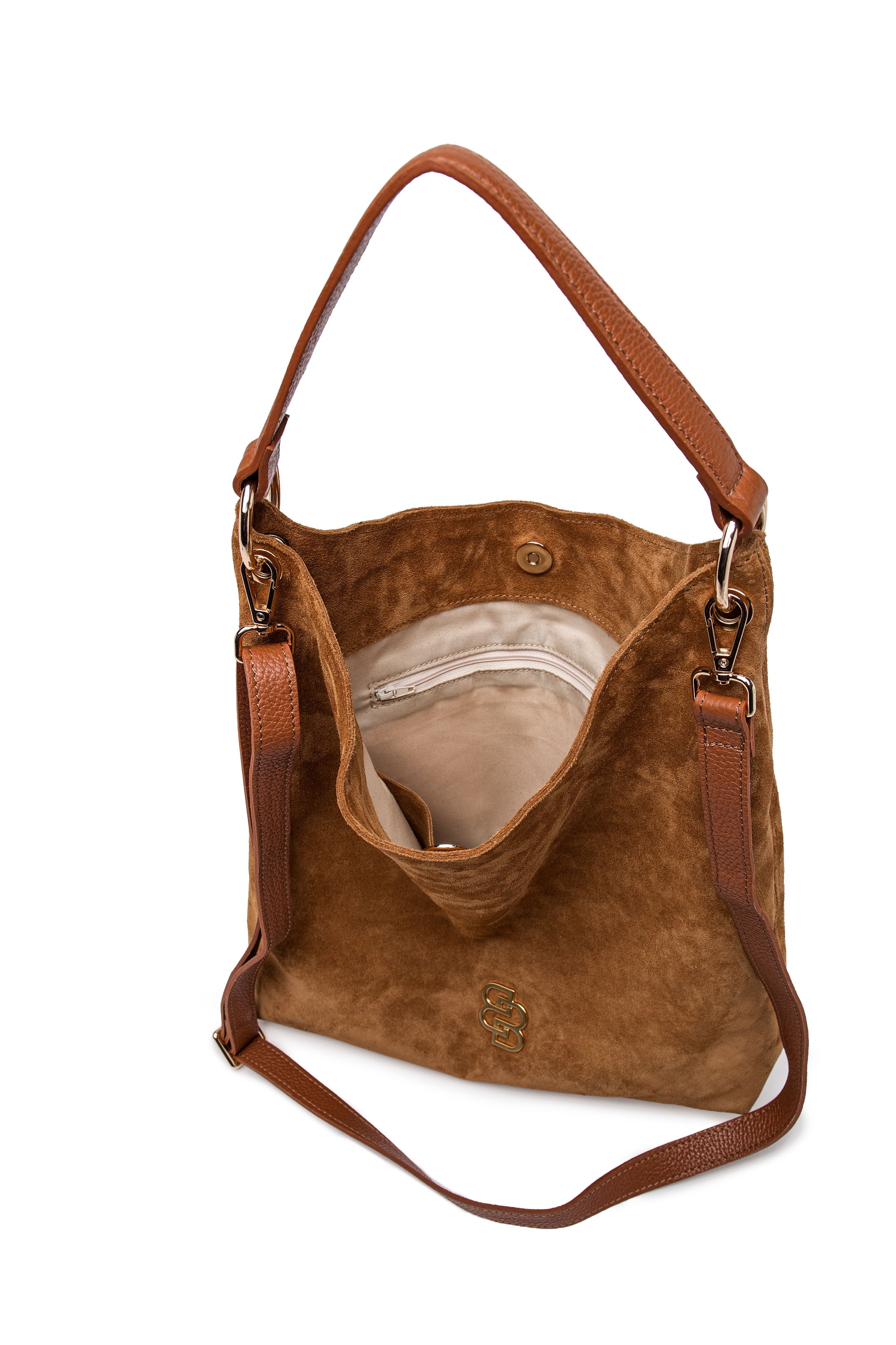 Effortlessly elegant and designed for everyday use, this suede hobo bag in a rich cognac brown tone combines softness, structure and practicality. Crafted from premium suede leather, it features a relaxed silhouette that adapts naturally to the body, offering both comfort and timeless style.
