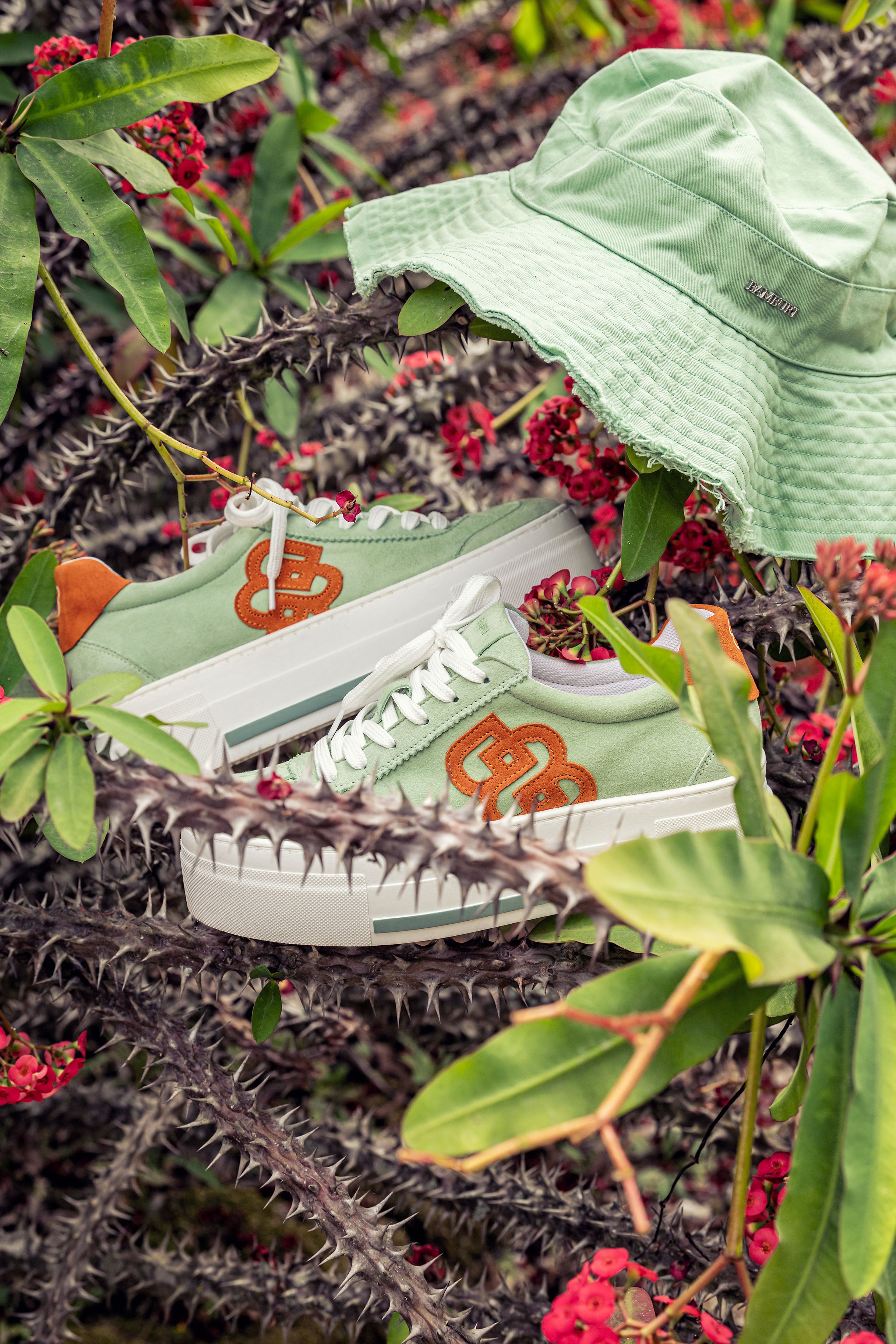 A bold yet refined sneaker that combines contemporary color contrast with a sculptural platform silhouette. Crafted in soft mint suede, this design is elevated by vibrant orange accents and the signature monogram embroidery, creating a striking visual identity.
